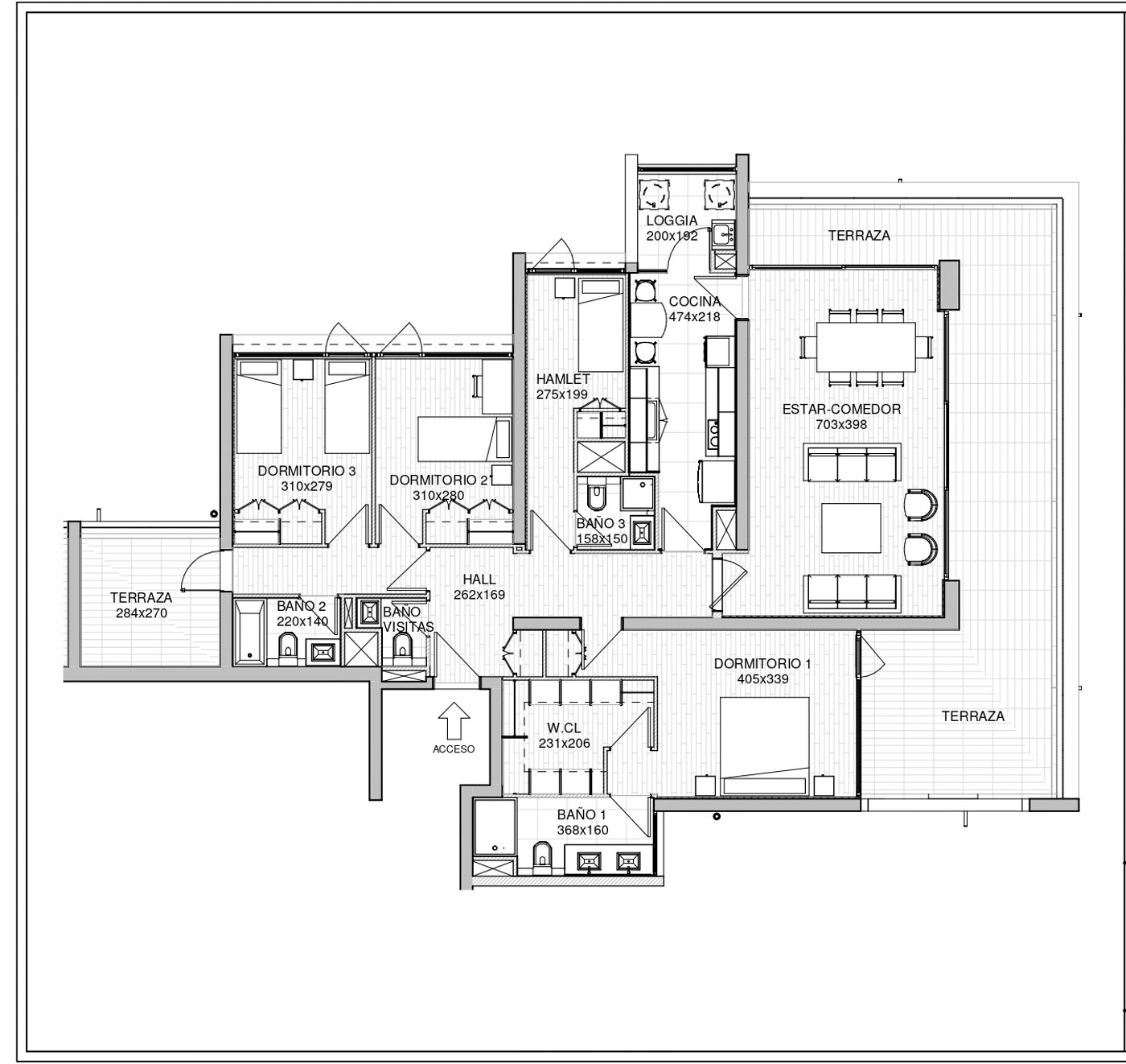 Con 136 m² habitables y 184,9 m² totales, este hogar ofrece: Hall de entrada amplio, Living–comedor, con vista panorámica y acceso a gran terraza con barandas de cristal, 4 dormitorios y 4 baños (incluido visitas). Dormitorio principal en suite, independiente, con salida a terraza, amplio baño con doble vanitorio, shower, ventilación y luz natural, walk-in closet, 2 dormitorios secundarios en sector privado, que comparten baño con tina. 4° dormitorio con baño privado, ideal para visitas u oficina. La cocina esta equipada con muebles italianos, encimera de inducción, horno eléctrico, campana, conexión a ice maker y desayunador. Logia con espacio para 2 equipos. La unidad posee una segunda terraza adicional, en zona de dormitorios secundarios, con espacio para una zona de juego. Como residentes podrán disfrutar de completas amenidades en el edificio: 2 quinchos panorámicos en la azotea, con vista a la cordillera, Salón Gourmet, piscina para adultos y niños pequeños, gimnasio, lindas áreas verdes, seguridad 24/7, control con acceso tecnológico, sistema free-flow vehicular, QR peatonal para residentes y visitas, cómodos bicicleteros y la disponibilidad de 44 estacionamientos para recibir a tus invitados.